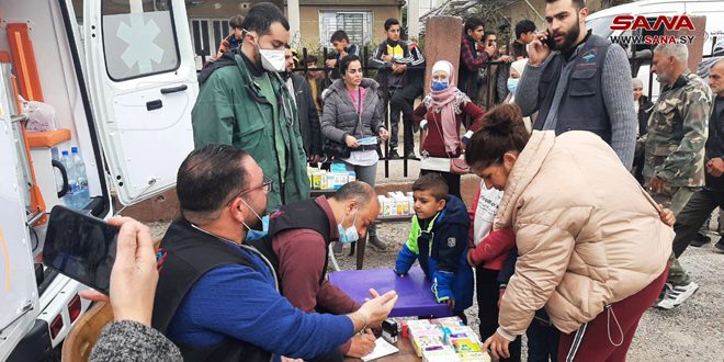 تقدم النقطة الطبية المؤقتة في بلدة الهنادي بريف اللاذقية التي أحدثتها مؤسسة التعاون السوري الروسي بالتعاون مع الجمعية الإمبراطورية الأرثوذكسية الروسية وجمعية روسار الخيرية وعدد من المنظمات الأهلية، الخدمات الطبية والأدوية للمتضررين من الزلزال.