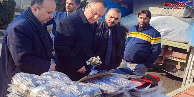 كما تسلمت السفارة السورية في إيران اليوم كمية أخرى من المساعدات الإنسانية للمتضررين من الزلزال تتضمن ألبسة شتوية مقدمة من التاجر الإيراني ناصر بلورجيان، وبالتنسيق مع منظمة التعبئة الشعبية لنقابات التجار والأسواق الإيرانية لإيصالها إلى متضرري الزلزال.