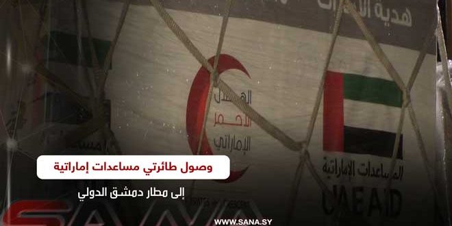 وصول طائرتين إماراتيتين محملتين بالمساعدات الإغاثية للمتضررين من الزلزال