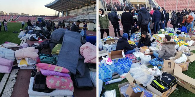 وقال رئيس اللجنة التنفيذية للاتحاد الرياضي بحلب مازن بيرم في تصريح ل”سانا”: إنه تم استقبال المتضررين في المدينة الرياضية بحلب وصالاتها وأندية الاتحاد أهلي حلب والحرية والجلاء واليرموك ومنشأة الباسل الرياضية، وشهدت الأيام الماضية تدفق المساعدات الإغاثية بشكل كبير في إطار الاستجابة لمطالب العائلات التي باتت بلا مأوى، فضلاً عن الخدمات المقدمة من كل الجمعيات الإغاثية والمبادرات الأهلية، ما ترك حالة من الطمأنينة لدى الأهالي.