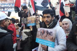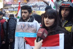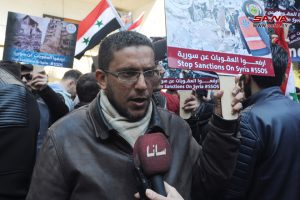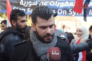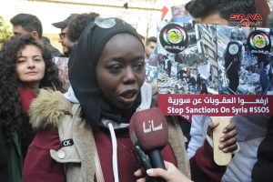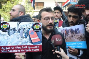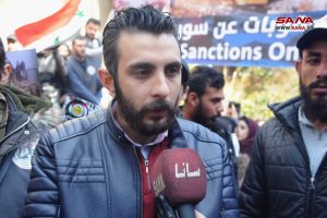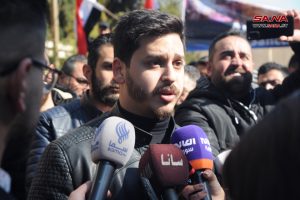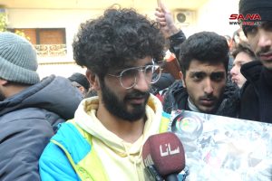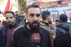 ومن اليمن قال الطالب جيفار الشفيري: “نحن كطلبة عرب موجودين في سورية العروبة والصمود والمقاومة نطالب برفع “العقوبات”، دون أي قيد أو شرط من أجل إعادة الحياة إلى سورية وإغاثة المناطق المنكوبة في المحافظات التي ضربها الزلزال، لأن هذه العقوبات مجحفة”.