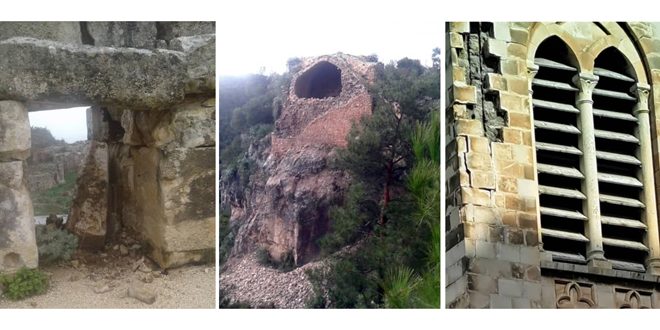 وأشار خير بك في تصريح لمراسلة سانا إلى أن معظم الأضرار تتراوح بين الطفيفة والمتوسطة من تشققات وتصدعات وانهيارات في بعض المواقع، لافتاً إلى الضرر الكبير الذي أصاب قلعة صلاح الدين الأيوبي التاريخية، حيث تم رصد وتسجيل تشققات خطرة في عدد من الأبراج والأسوار، وانهيار جزئي بأحد الأبراج في الجهة الغربية، وتساقط بعض الحجارة من البرج الملكي، إضافة