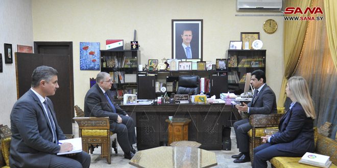 بحث وزير التربية الدكتور دارم طباع مع مدير مكتب الأمم المتحدة لخدمات المشاريع في عمان محمد عثمان أكرم سبل تأمين متطلبات إعادة العملية التعليمية في المحافظات المنكوبة جراء الزلزال، وتوفير بيئة مدرسية آمنة.