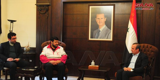 بحث وزير الإدارة المحلية والبيئة المهندس حسين مخلوف رئيس اللجنة العليا للإغاثة مع رئيس جمعية الهلال الأحمر في الجمهورية الإسلامية الإيرانية الدكتور بير حسين كوليوند والوفد المرافق، استمرار تقديم المساعدات الإيرانية وفقاً لاحتياجات المناطق المنكوبة جراء الزلزال.