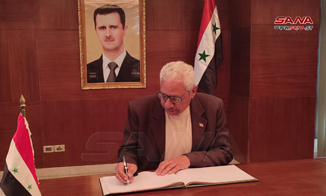 وزارت العديد من الوفود الحزبية مقر البعثة الدبلوماسية السورية لدى مصر، لتقديم التعازي بشهداء الزلزال المدمر لليوم الخامس على التوالي، مطالبة بكسر الحصار الاقتصادي الجائر على سورية.