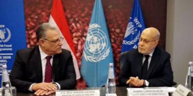بحث وزير الزراعة والإصلاح الزراعي المهندس محمد حسان قطنا مع نائب المدير العام لبرنامج الغذاء العالمي لشؤون سلاسل الإمداد والطوارئ راميرو لوبيز داسيلفا أوجه التعاون القائمة بين البرنامج وسورية وتطويره بما يسهم بتنمية القطاع الزراعي وتحقيق الأمن الغذائي.