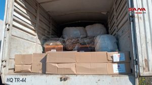 وكانت باخرة إيطالية وصلت في وقت سابق اليوم إلى مرفأ بيروت، تحمل مساعدات من إيطاليا والاتحاد الأوروبي لمتضرري الزلزال ثم نقلها الصليب الأحمر اللبناني إلى الحدود مع سورية.