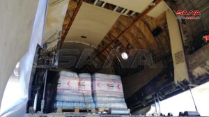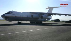 كما وصلت إلى مطار دمشق الدولي اليوم طائرة مساعدات روسية تحمل 15 طناً من المواد الغذائية والألبسة للمتضررين من الزلزال.