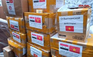 إلى ذلك قام وفد من سفارة فيتنام الاشتراكية والجالية الفيتنامية في روسيا بزيارة مقر السفارة السورية في موسكو، حاملاً معه كمية كبيرة من المساعدات المخصصة للمتضررين من الزلزال.