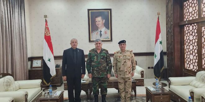 استقبل العماد علي محمود عباس نائب القائد العام للجيش والقوات المسلحة_وزير الدفاع صباح اليوم اللواء الركن مازن حميد شلال مهدي مبعوث وزير الدفاع العراقي، والمستشار ياسين شريف الحجيمي القائم بأعمال سفارة جمهورية العراق بدمشق.