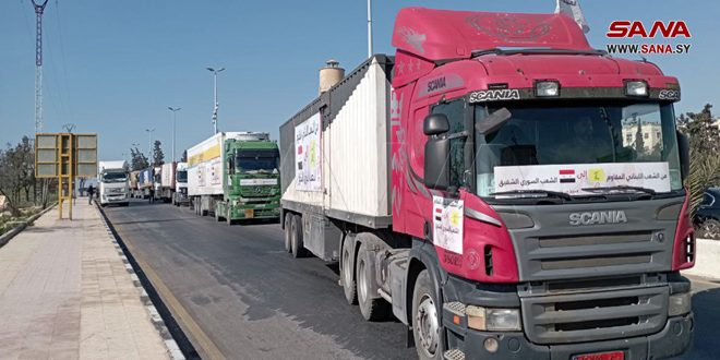 وصلت إلى محافظة حلب اليوم قافلة مساعدات إنسانية من لبنان نظمها حزب الله، لدعم المتضررين من الزلزال ضمت 29 شاحنة محملة بـ 600 طن من المواد الطبية والغذائية.
