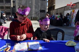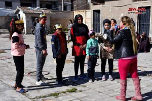 بهدف معالجة الآثار النفسية السلبية للزلزال على الأطفال والتفريغ النفسي لمظاهر الصدمة والخوف، نظمت مديرية تربية حمص بالتعاون مع فرع طلائع البعث وفريق تنمية مهارات الحياة فعاليات ترفيهية موجهة للأطفال المتضررين في مركز الإيواء بمدرسة الشهيد محمود عثمان في حي القصور بمدينة حمص.