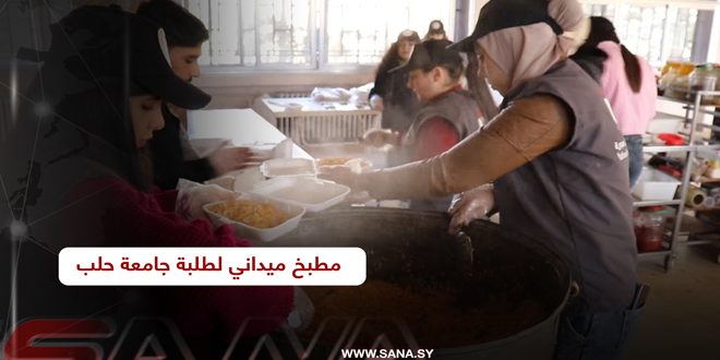 المطبخ الميداني لطلبة جامعة حلب يواصل تقديم الوجبات للمتضررين من الزلزال