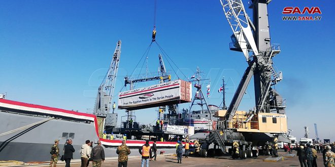 وصلت إلى ميناء اللاذقية اليوم سفينة مصرية محملة بنحو 500 طن من المساعدات الإغاثية لدعم جهود مواجهة تداعيات الزلزال، وتقديم الإغاثة للمتضررين.