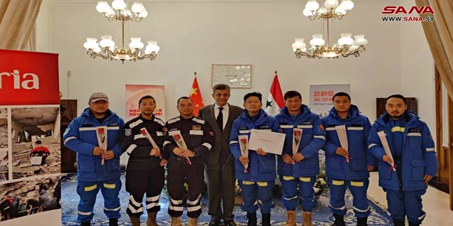 أعرب السفير السوري لدى الصين محمد حسنين خدام وأفراد السفارة عن شكرهم لجهود الفريق الإغاثي الصيني بعد انتهاء مهمتهم الإنسانية في سورية.