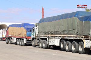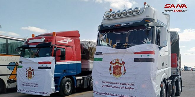 دخلت إلى سورية اليوم عن طريق معبر نصيب الحدودي مع الأردن 13 شاحنة، تحمل مواد إغاثية متنوعة للمتضررين من الزلزال في سورية.