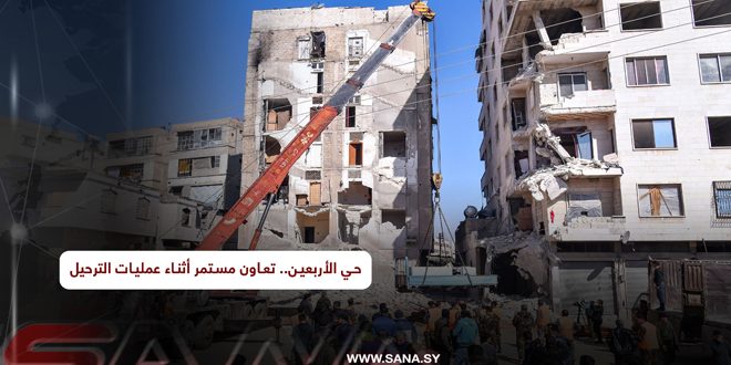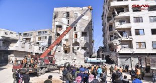 حماة-سانا أمام البناء الملاصق لمبنى الأربعين بحماة الذي انهار بالكامل جراء زلزال السادس من شباط …