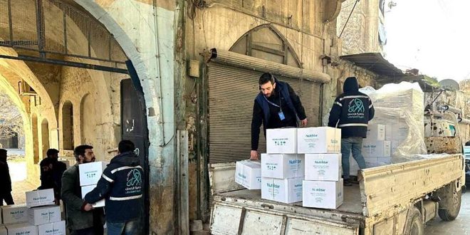 سلمت الأمانة السورية للتنمية نحو 6 آلاف علبة حليب نان 1 ونان 2 إلى جمعية تآلف الخيرية في حلب، ليتم توزيعها مباشرة على مراكز الإيواء وفق برنامج التوزيع اليومي.