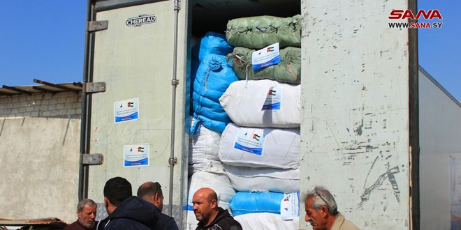 وصلت إلى حلب قافلة مساعدات أردنية نظمتها غرفة تجارة العقبة، مؤلفة من 6 شاحنات تحمل 100 طن من المواد الغذائية والطبية والأغطية والحرامات تم إيداعها في مركز جبرين شرق حلب لتوزيعها على المتضررين من الزلزال.