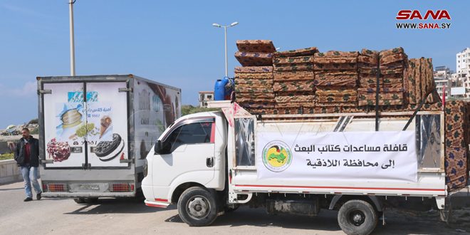 وصلت قافلة مساعدات إنسانية من حزب البعث العربي الاشتراكي محملة بـ 10 أطنان من مواد غذائية وإغاثية لمتضرري الزلزال في اللاذقية.