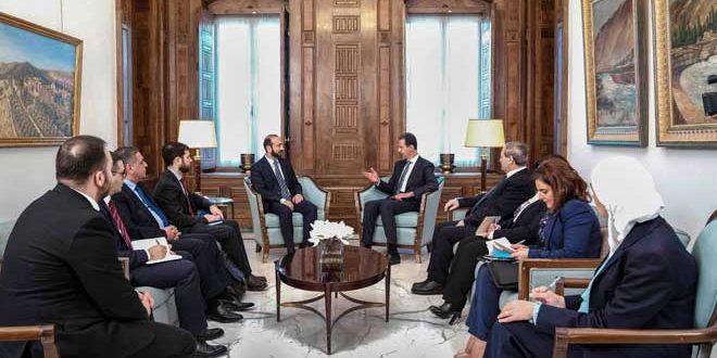 الرئيس الأسد خلال استقباله وزير خارجية أرمينيا