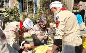 يواصل الفوج الثالث لكشاف سورية إعداد وتقديم وجبات الطعام للمتضررين جراء الزلزال في مراكز الإيواء وإيصالها لهم من خلال فرق المتطوعين، إضافة إلى توزيع السلات الغذائية والحليب والألبسة.