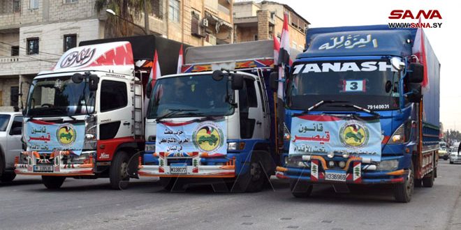 وصلت إلى حلب اليوم قافلة مساعدات غذائية وإغاثية من لبنان، مقدمة من القيادة القطرية لحزب البعث العربي الاشتراكي في لبنان, مؤلفة من 72 شاحنة للمتضررين من الزلزال.