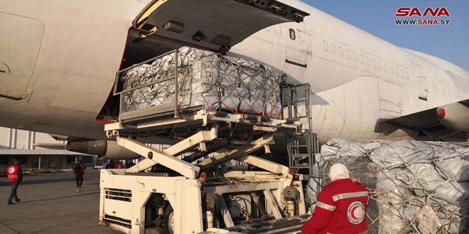 وصلت إلى مطار دمشق الدولي اليوم طائرة مساعدات مقدمة من دول الاتحاد الأوروبي، تحمل مواد إغاثية وطبية للمتضررين من الزلزال.