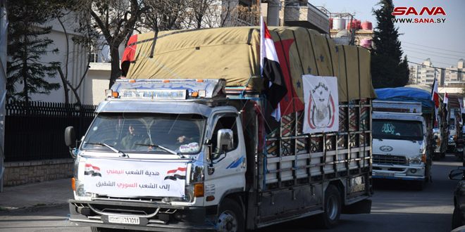 وأشار السفير صبري إلى أن هذه القافلة رمز للروابط المشتركة بين الشعبين الشقيقين، وتهدف إلى تعزيز الجهود لكسر الحصار الجائر والعقوبات الغربية على سورية التي كان لها أثر كبير في مضاعفة آثار الكارثة الطبيعية التي ضربتها.