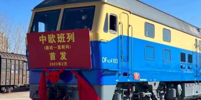 أعلنت الصين اليوم انطلاق أول قطار شحن من محطة السكة الحديدية في مدينة لانغفانغ بمقاطعة خبي شمال البلاد باتجاه أوروبا في رحلة تمتد 7800 كيلو متر.
