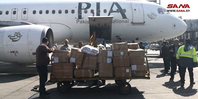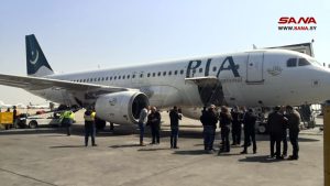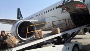 وصلت إلى مطار دمشق الدولي اليوم طائرة باكستانية تحمل مساعدات للمتضررين من الزلزال.