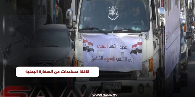 السفارة اليمنية تسير قافلة مساعدات إنسانية تحمل مواد إغاثية إلى حلب
