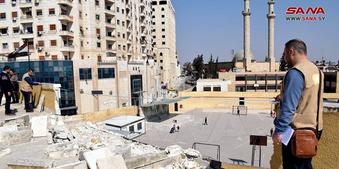 يواصل وفد من منظمة اليونيسكو لليوم الثاني على التوالي تفقد واقع الأضرار التي أصابت الأبنية في قطاعي التربية والآثار في حلب جراء الزلزال.