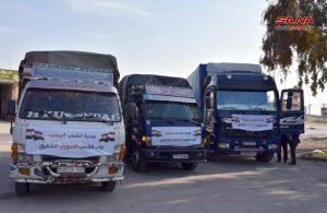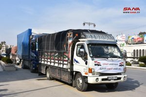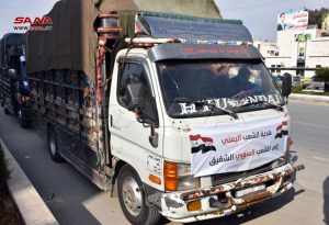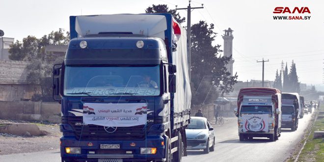 وصلت إلى محافظة حماة اليوم قافلة من المساعدات الإغاثية والغذائية تضم 6 شاحنات، مقدمة من اليمن لأهالي المناطق المنكوبة في المحافظة.