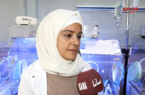 أما الممرضة أميرة الحسن التي كانت موجودة في قسم حواضن الأطفال لحظة وقوع الزلزال فقالت: “رأيت المعالجات تتساقط على الأرض والحواضن تهتز بشدة فسارعت لمساندة الحواضن بكلتا يديّ حتى أحافظ على صحة الأطفال فيها.