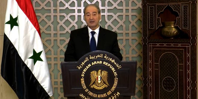 وأشار المقداد إلى أن سورية واجهت على مدى السنوات الماضية حربا ظالمة وظفت خلالها دول معروفة سلاح الإرهاب ضد الشعب السوري وزجت فيها عشرات آلاف الإرهابيين الأجانب الذين استقدمتهم من شتى أنحاء الأرض وزودتهم بشتى أنواع الدعم والأسلحة بما فيها الأسلحة المحرمة دوليا لخدمة أجنداتها العدوانية تجاه سورية والمنطقة.
