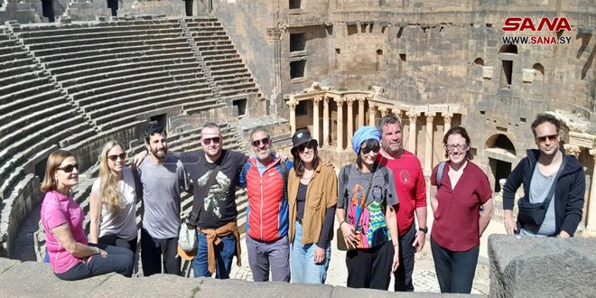 زارت مجموعة سياحية من جنسيات أوروبية مختلفة مدينة بصرى الشام بريف درعا اليوم، بهدف التعرف على حضارة هذه المدينة وما تضمه من أوابد عريقة موغلة في القدم.