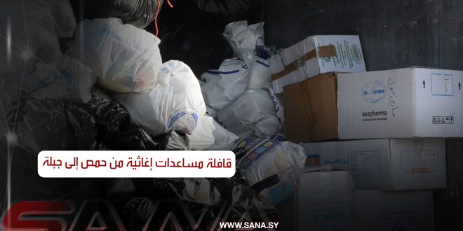 قافلة مساعدات إغاثية من حمص إلى المتضررين من الزلزال في جبلة