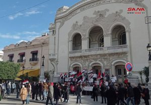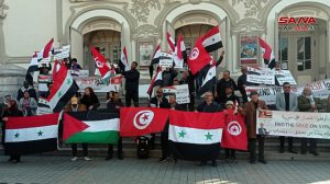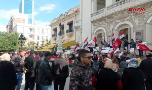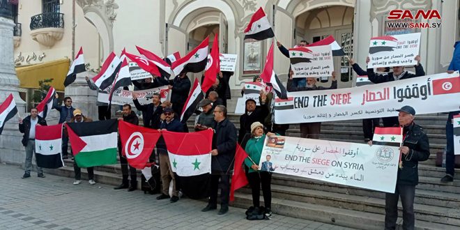 نظم اتحاد طلبة سورية في تونس والتنسيقية الوطنية التونسية لكسر الحصار على سورية وقفة تضامنية في تونس العاصمة، للمطالبة بكسر الحصار الجائر المفروض على سورية.