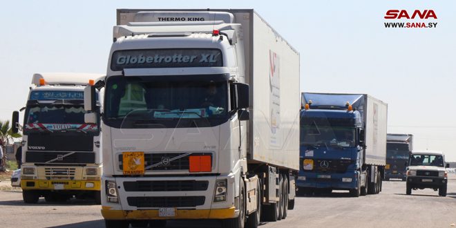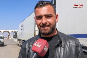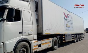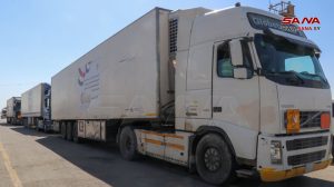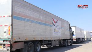 وبين مدير معبر نصيب الحدودي المهندس شادي أبازيد في تصريح لمراسلة سانا أن القافلة مؤلفة من خمس شاحنات براد ، وتسلمها متطوعو فرع الهلال الأحمر العربي السوري بدرعا، لنقلها إلى المحافظات المتضررة، مشيراً إلى أنها تضم مواد غذائية وحليب أطفال وألبسة ومستلزمات إيواء.