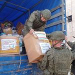 وصلت قافلة مساعدات روسية إلى حي الشيخ مقصود بمدينة حلب مؤلفة من أربع شاحنات تحتوي مواد غذائية وحرامات وألبسة وأغطية وخيماً للمتضررين من الزلزال.