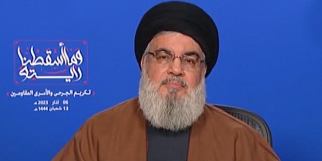 أكد الأمين العام لحزب الله السيد حسن نصر الله أن المقاومة لن تتخلى عن حبة تراب من أرض لبنان، أو نقطة ماء من بحره، مشدداً على أن القوة الرادعة التي يتمتع بها لبنان بمواجهة العدو الإسرائيلي لم تحظ بالدعم إلا من قبل سورية وإيران، ولذلك تحاربان اليوم.