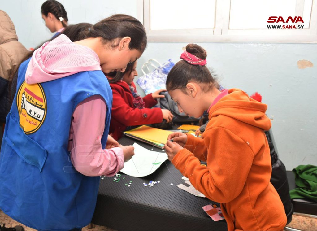 بمشاركة مديرية تربية حماة وفروع الشبيبة والطلائع ونقابة المعلمين تستمر فعاليات الدعم النفسي للمتضررين بالزلزال من التلاميذ والطلاب والأهالي المقيمين في مراكز الإيواء.