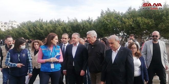 اطلع المفوض السامي للأمم المتحدة لشؤون اللاجئين فيليبو غراندي يرافقه محافظ اللاذقية المهندس عامر هلال على أوضاع المتضررين من الزلزال في مركز إيواء الشهيد صالح محمود بجبلة.