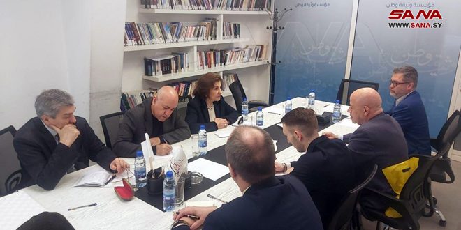 التقت المستشارة الخاصة في رئاسة الجمهورية الدكتورة بثينة شعبان اليوم فيتالي نعومكين رئيس معهد الاستشراق التابع لأكاديمية العلوم لروسيا الاتحادية والوفد المرافق في مقر مؤسسة وثيقة وطن بدمشق.