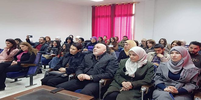 بمناسبة اليوم العالمي للمرأة أقامت كلية التربية بجامعة البعث أصبوحة شعرية، قدمت فيها الشاعرة خديجة حجازي عدة قصائد وجدانية وإنسانية ووطنية، إضافة لبعض الخواطر من وحي المناسبة.