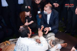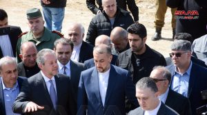 اطلع وزير الخارجية الإيراني حسين أمير عبد اللهيان على الأضرار التي خلفها الزلزال في حي العسالية بمدينة جبلة، وأوضاع العائلات المتضررة المقيمة في مركز الإيواء بمدينة الأسد الرياضية باللاذقية.