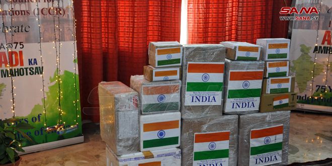 القائم بأعمال السفارة بدمشق ساتيندر كومار ياداف قال في تصريح صحفي: إن الحكومة الهندية قدمت شحنتين لسورية كمواد إغاثية الأولى كانت في الـ 8 من شباط الماضي، والثانية في الـ 12 منه تحوي مواد ضرورية إغاثية إضافة إلى الأدوية، مشيراً إلى أنه من هذا المنطلق جاءت شحنة اليوم، وهي عبارة عن أدوية لمرضى السرطان، وستتبعها لاحقا شحنات لمواد إغاثية.