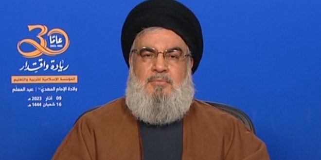 وأشار السيد نصر الله إلى أنه في الأزمة السياسية والاقتصادية في لبنان يجب أن تكون الرسالة الأساسية عدم اليأس لأن نتيجته الاستسلام، مؤكداً أن واشنطن شريكة بالفساد في لبنان، حيث تمنع وضع الودائع في بنوكه وتمنع الاستثمار والمساعدات، والمطلوب الاستسلام لكننا نقول: لا تتوقعوا منا استسلاما ولا انصياعاً.