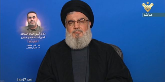 ولفت نصر الله إلى أن لبنان يتأثر جداً بما يجري حوله وبشكل أساسي بدول الجوار، فالحديث عن حاضر ومستقبل سورية هو حديث عن حاضر ومستقبل لبنان، والحديث عن حاضر ومستقبل فلسطين هو حديث عن حاضر ومستقبل لبنان.
